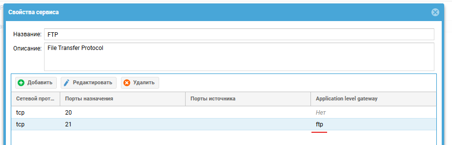 Также стоить обратить внимание, для некоторых случаев публикации FTP для подмены в пакетах PAYLOAD (вставляя вместо реального адреса сервера адрес, через который он опубликован) потребуется включить на сервисном порту Application level gateway: