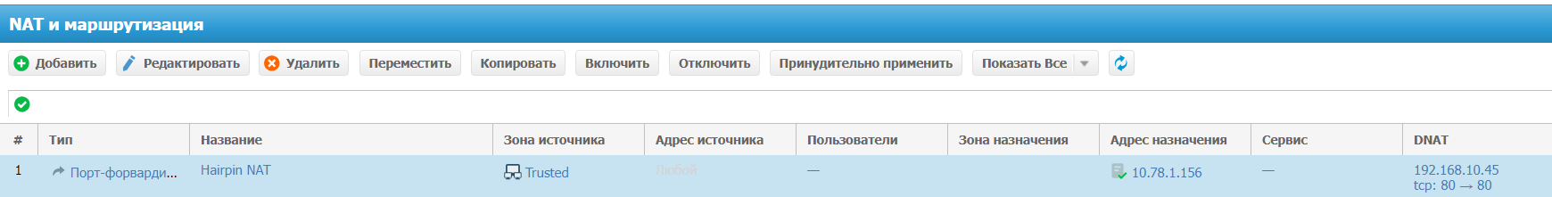 Необходимо настроить доступ к опубликованным через DNAT сервисам изнутри сети (Hairpin NAT)